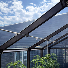- Прутковая нержавеющая система подвязывания равномерно распределяет нагрузку на каркас, что снижает риск повреждения стекла, и вам удобнее ухаживать за высокорослыми культурами.